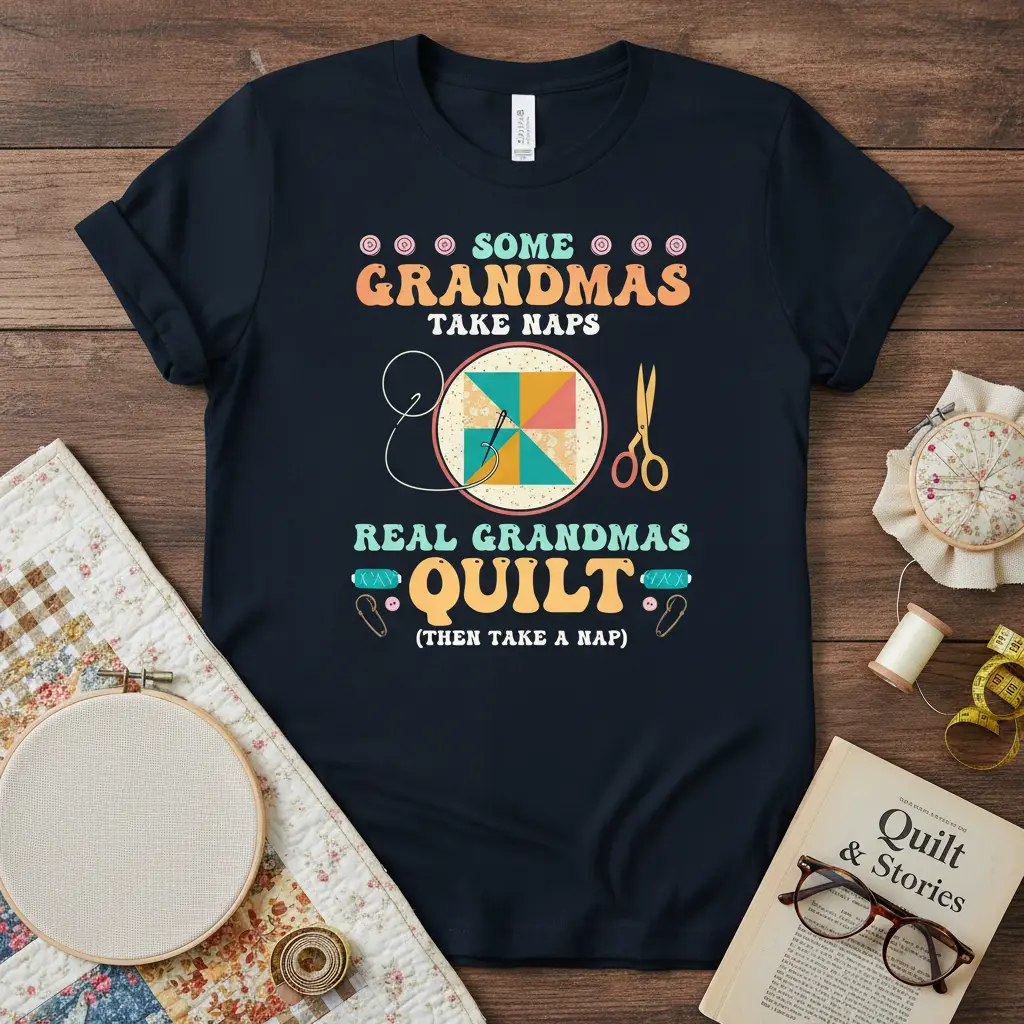 This “Some Grandmas Take Naps, Real Grandmas Quilt” t-shirt is designed to make a statement. It celebrates the dedication, creativity, and occasional need for rest that comes with being a quilter. It’s a fun, engaging piece that any grandma who loves to quilt will appreciate and cherish. It’s the perfect way to show off your identity as a crafty and dedicated grandma.