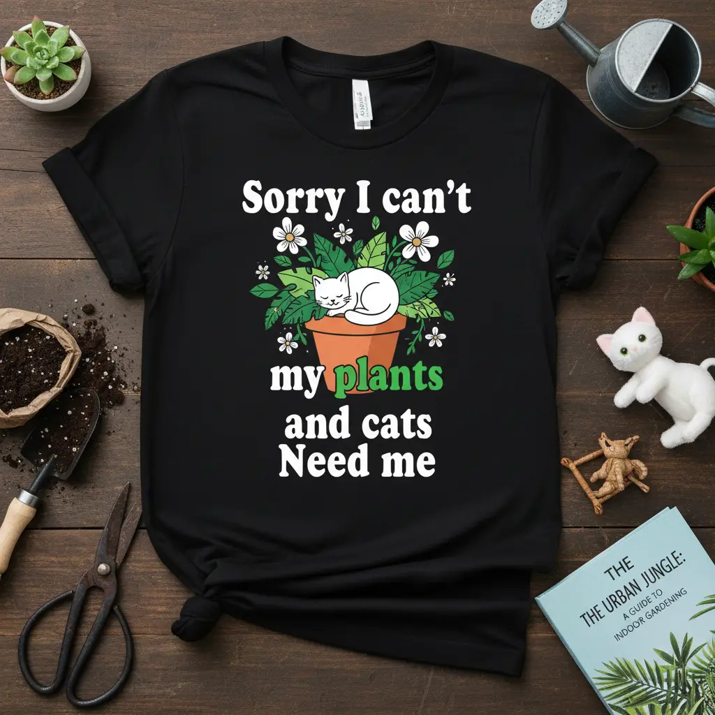 Sorry I Can’t My Plants and Cats Need Me T-Shirt