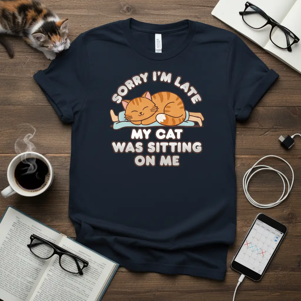 The “Sorry I’m Late My Cat Was Sitting On Me” T-Shirt is more than just a funny saying; it’s a lifestyle statement. It speaks to the deep connection and unconditional love that cat owners share with their pets. This shirt is a subtle yet clear declaration of your priorities – that sometimes, your cat’s comfort and affection take precedence over punctuality.