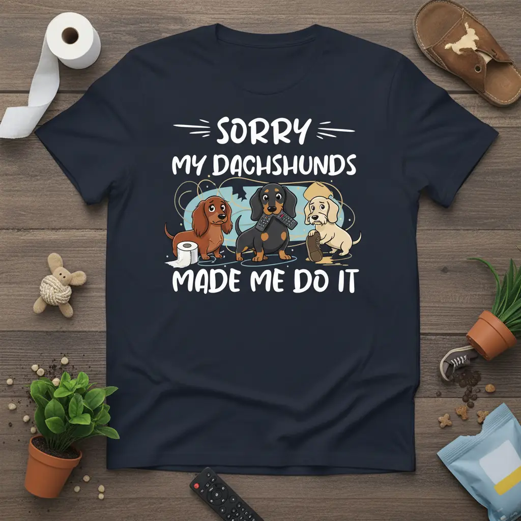 This tee serves as a constant reminder of the joy and laughter your Dachshunds bring into your life, even amidst the mess. It’s designed to be a staple in your casual wear collection, offering both comfort and a statement piece that showcases your passion for your pets.
