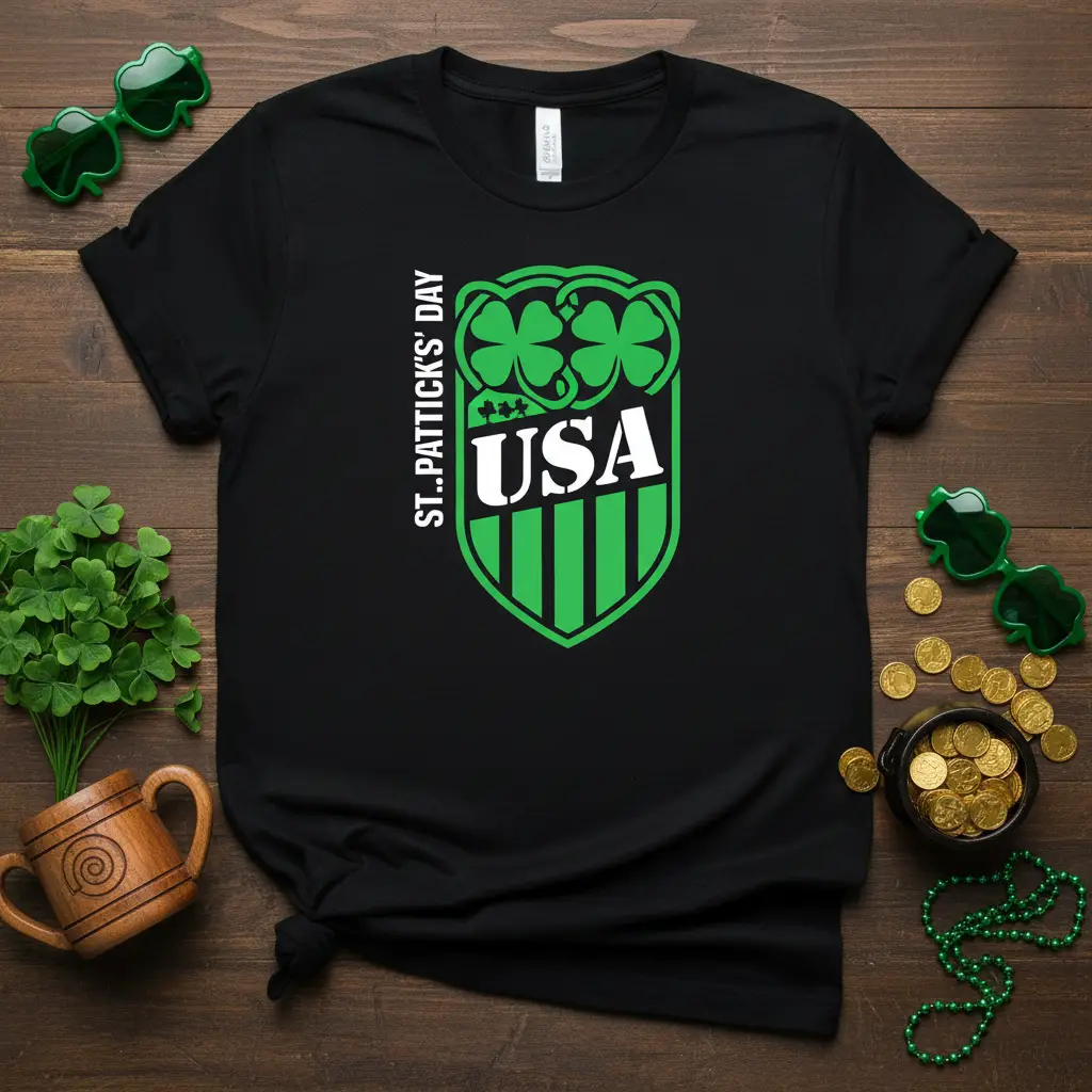 St. Patrick’s Day USA celebrations are a fantastic opportunity to showcase your heritage and festive spirit. This unique t-shirt design captures the essence of Irish pride combined with American patriotism, making it a standout piece for any holiday gathering. The striking visual elements, including the iconic shamrocks and bold “USA” lettering, are sure to turn heads and spark conversations. It’s more than just apparel; it’s a statement of celebration and identity, perfect for parades, parties, or simply enjoying the festivities with friends and family.