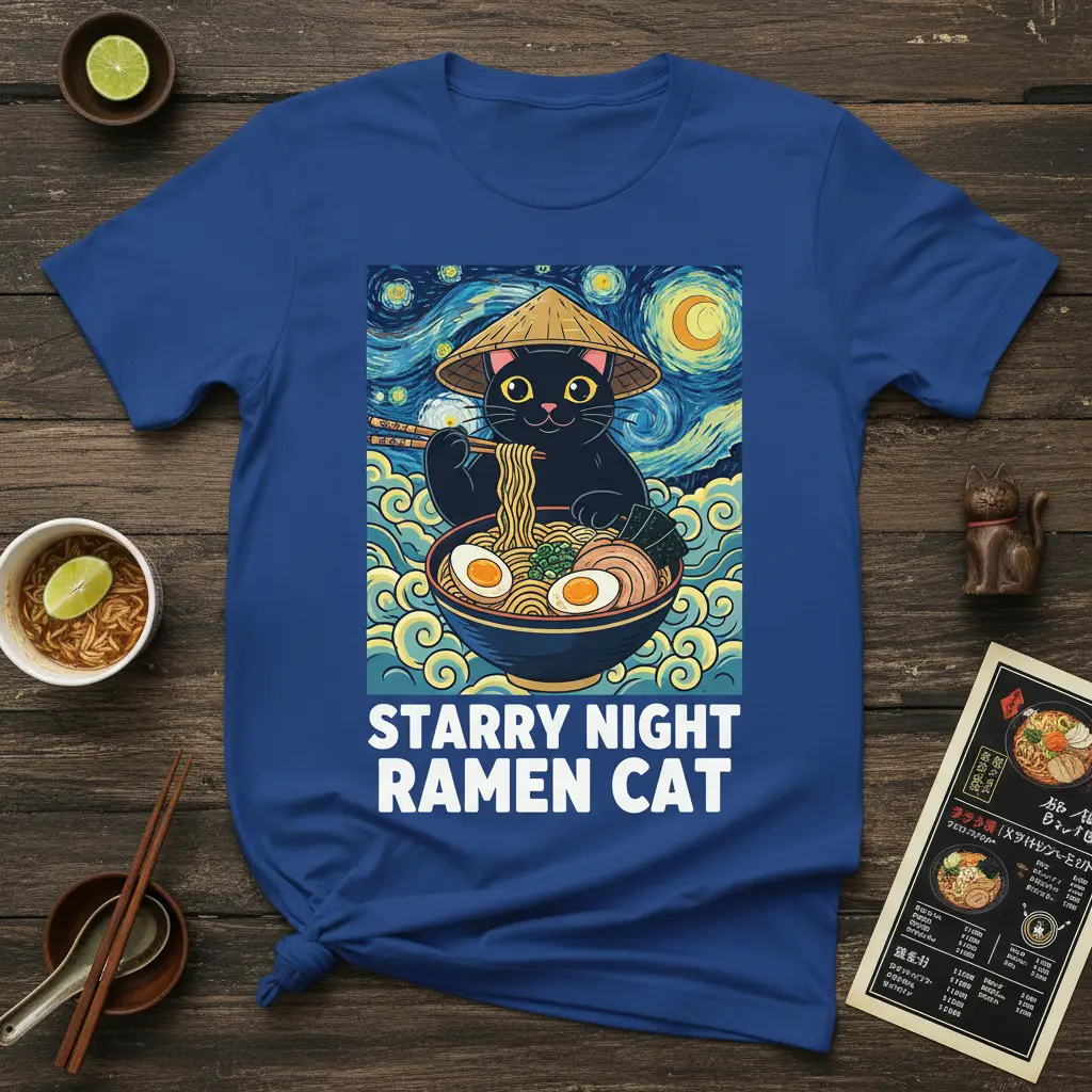 Starry Night Ramen Cat T-Shirt: An Artistic Culinary Adventure