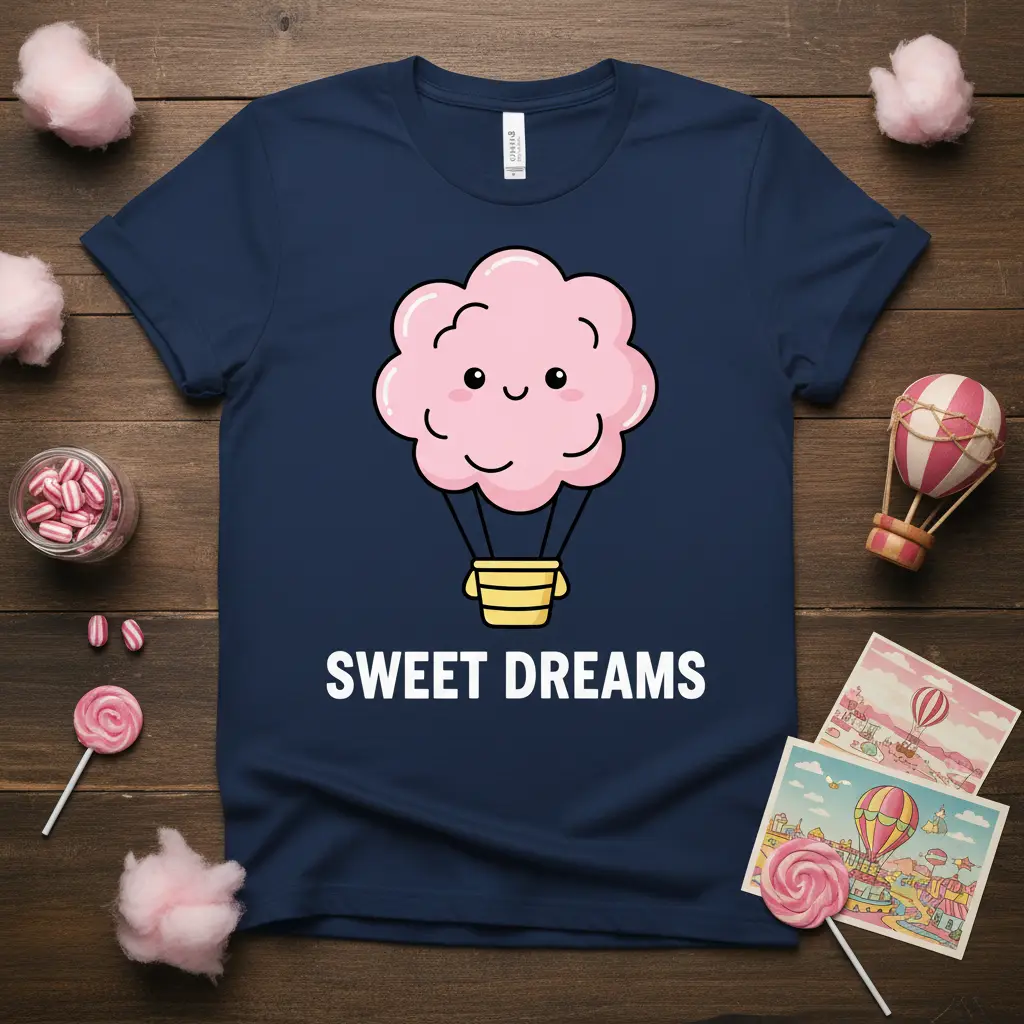 SWEET DREAMS come to life on this incredibly soft and comfortable navy t-shirt. Featuring a whimsical and adorable pink cloud character designed to resemble a hot air balloon, this tee is perfect for anyone who loves to drift into a world of imagination and peaceful slumber. The crisp white lettering clearly displays the inspiring phrase, making it a delightful addition to any wardrobe. It’s more than just apparel; it’s a wearable reminder to embrace positivity and the magic found in everyday moments, especially those spent dreaming. This shirt is designed to bring a smile to your face and comfort to your day.