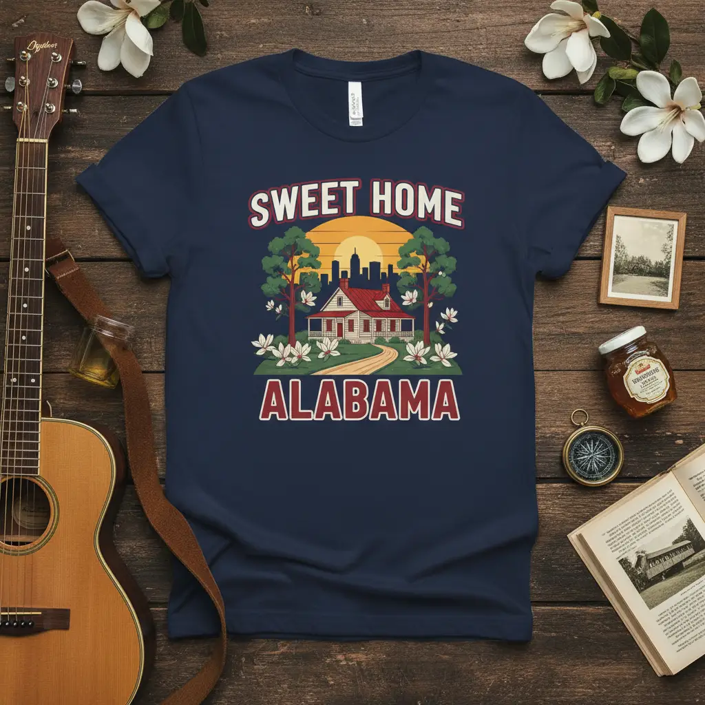 Pick from Black, Navy, Royal, Dark Heather, Red, and White to match your mood and wardrobe staples. Each colorway keeps the SWEET HOME ALABAMA design clear and photo-ready for everyday wear.