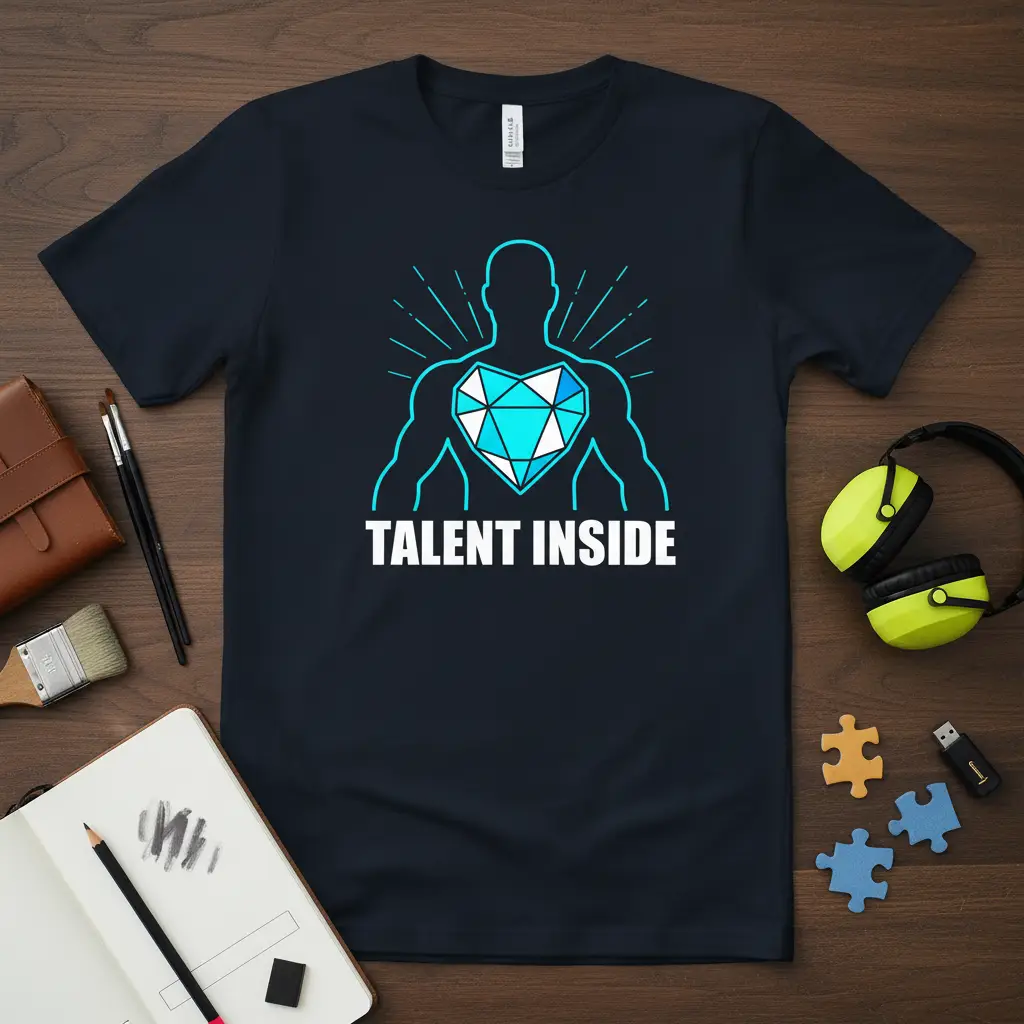 The “Talent Inside” t-shirt is designed to resonate with individuals who pride themselves on their ingenuity and inventive spirit. Whether you’re a writer, musician, designer, or coder, this shirt speaks to the artist in everyone. It’s a declaration that your skills are valuable and deserve to be recognized, both by yourself and by the world around you.