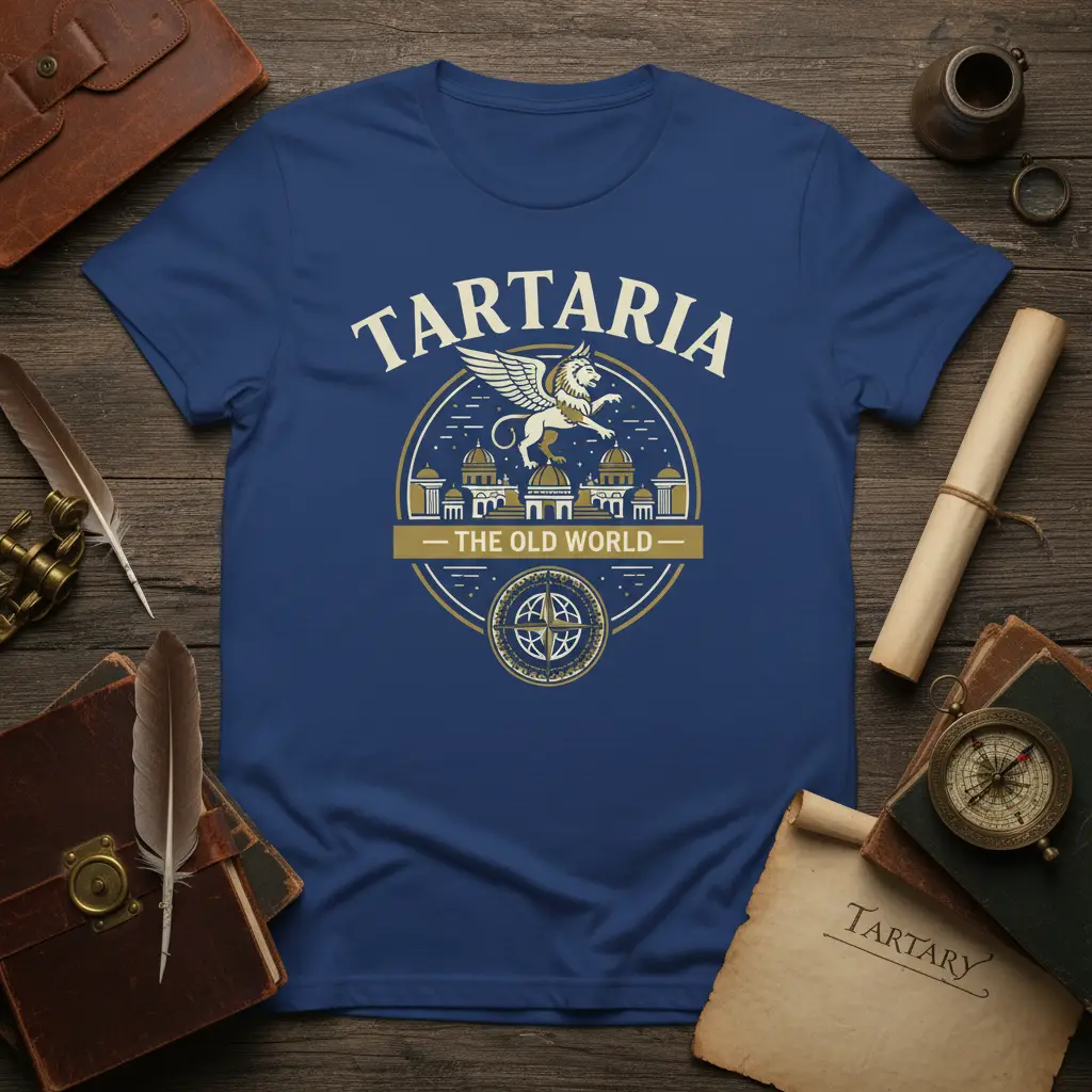 To ensure the perfect fit and style for every wearer, this TARTARIA THE OLD WORLD t-shirt is available in a selection of classic colors. You can choose from versatile Black, deep Navy, vibrant Red, clean White, subtle Dark Heather, or striking Royal blue. These colors provide an excellent backdrop for the detailed graphic, making it pop and ensuring its longevity through countless washes.
