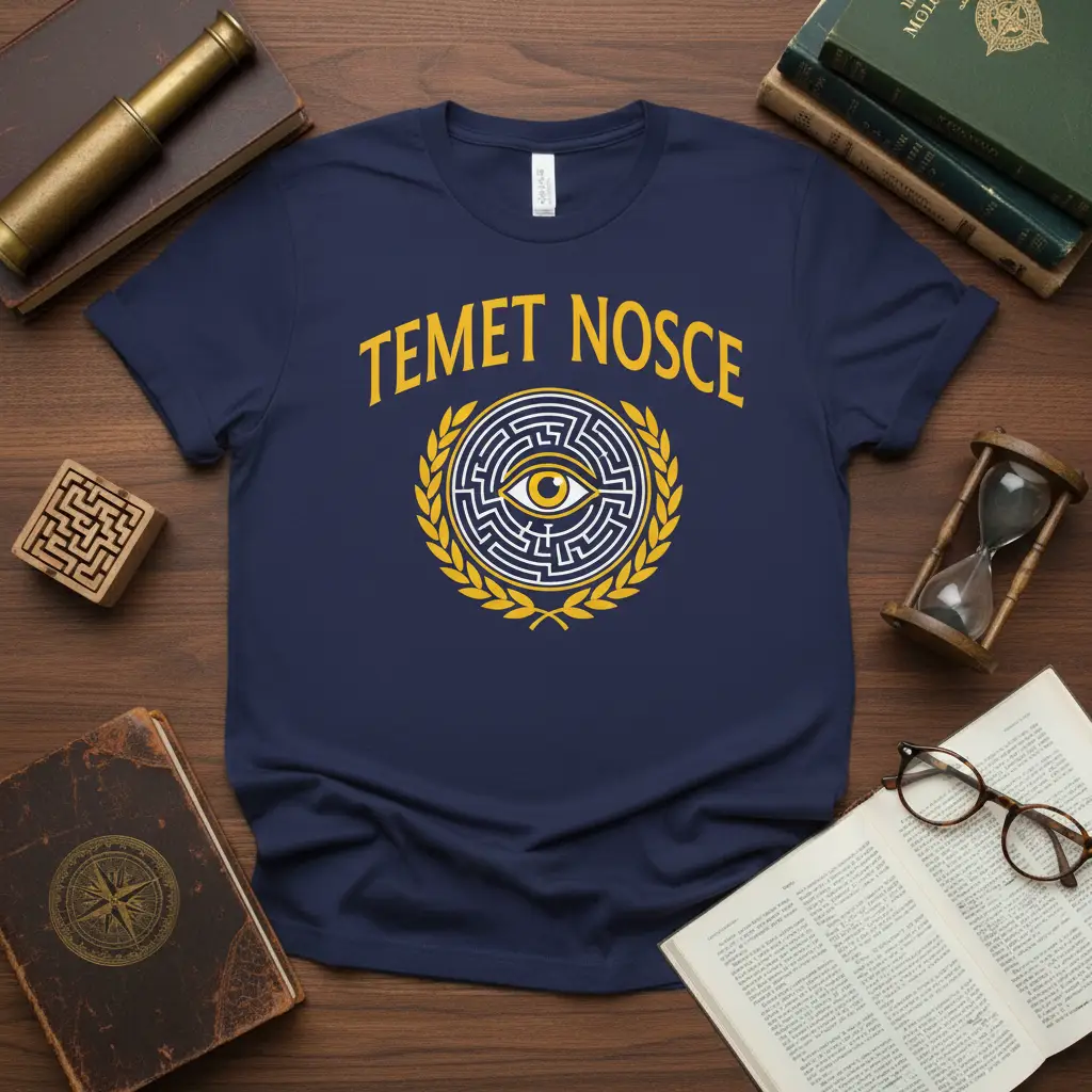 Navigating the maze of one’s own consciousness is a lifelong endeavor, and this t-shirt captures that essence perfectly. The ‘Temet Nosce’ design encourages wearers to delve into their own minds, confronting challenges and seeking clarity. It’s a wearable reminder that true understanding begins from within, and that the most important journey is the one inward.