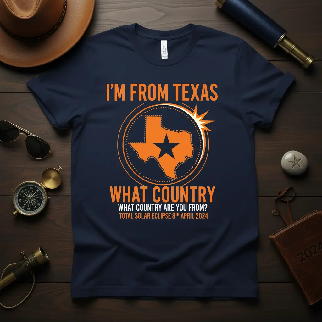 The Total Solar Eclipse on April 8th, 2024, is a monumental event, and what better way to celebrate than by wearing your Texas pride on your sleeve? This t-shirt proudly proclaims “I’M FROM TEXAS,” connecting you directly to the heart of the path of totality. The striking graphic featuring the Texas map alongside the question “WHAT COUNTRY ARE YOU FROM?” adds a touch of playful patriotism, making it a unique piece for any eclipse enthusiast.