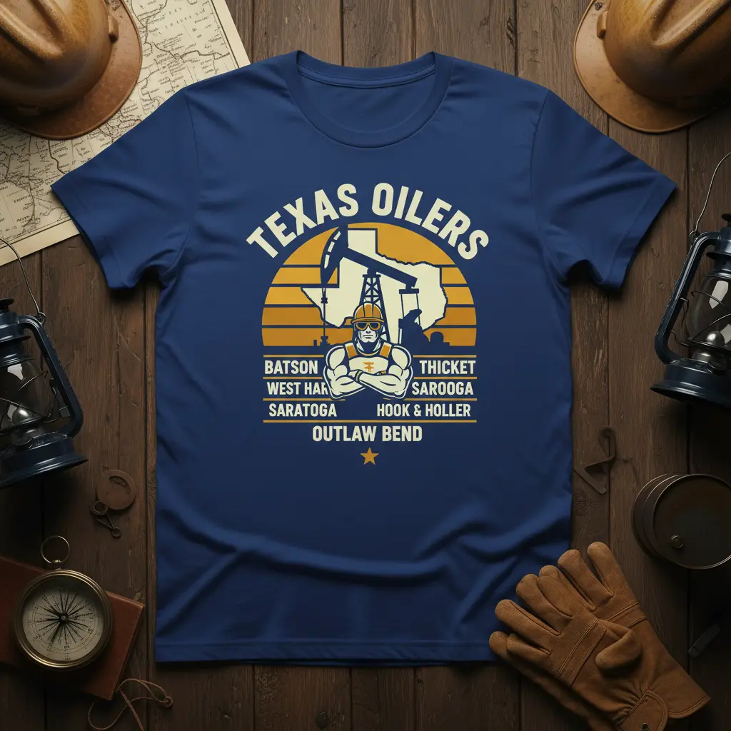 Don’t miss out on the opportunity to own this distinctive Texas Oilers T-Shirt. It’s a powerful statement piece that celebrates the heart of Texas’s energy sector and the hardworking individuals who drive it forward. Add this essential piece to your wardrobe and wear your pride with confidence. This shirt is a testament to the grit and determination that defines the Texas oil industry, making it a must-have for anyone connected to this vital field.