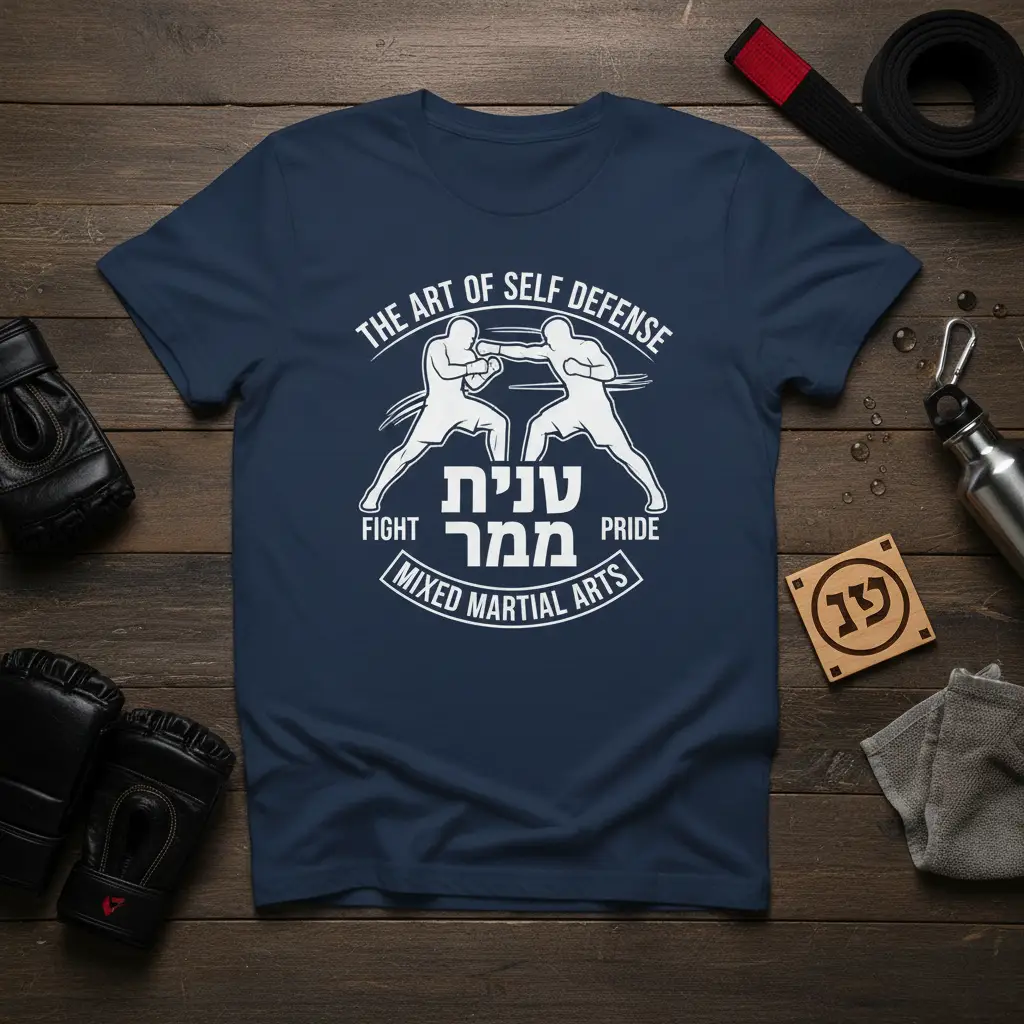 This design is perfect for individuals who live and breathe mixed martial arts. It’s a conversation starter and a way to instantly connect with others who share the same passion. The combination of English and Hebrew text offers a unique aesthetic that stands out. Whether you’re heading to the gym, training at home, or just out and about, this t-shirt lets you carry your dedication with you.