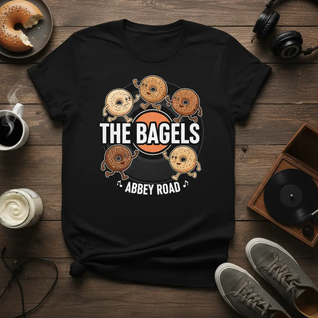 The Bagels Abbey Road T-Shirt: A Perfect Blend of Food and Music