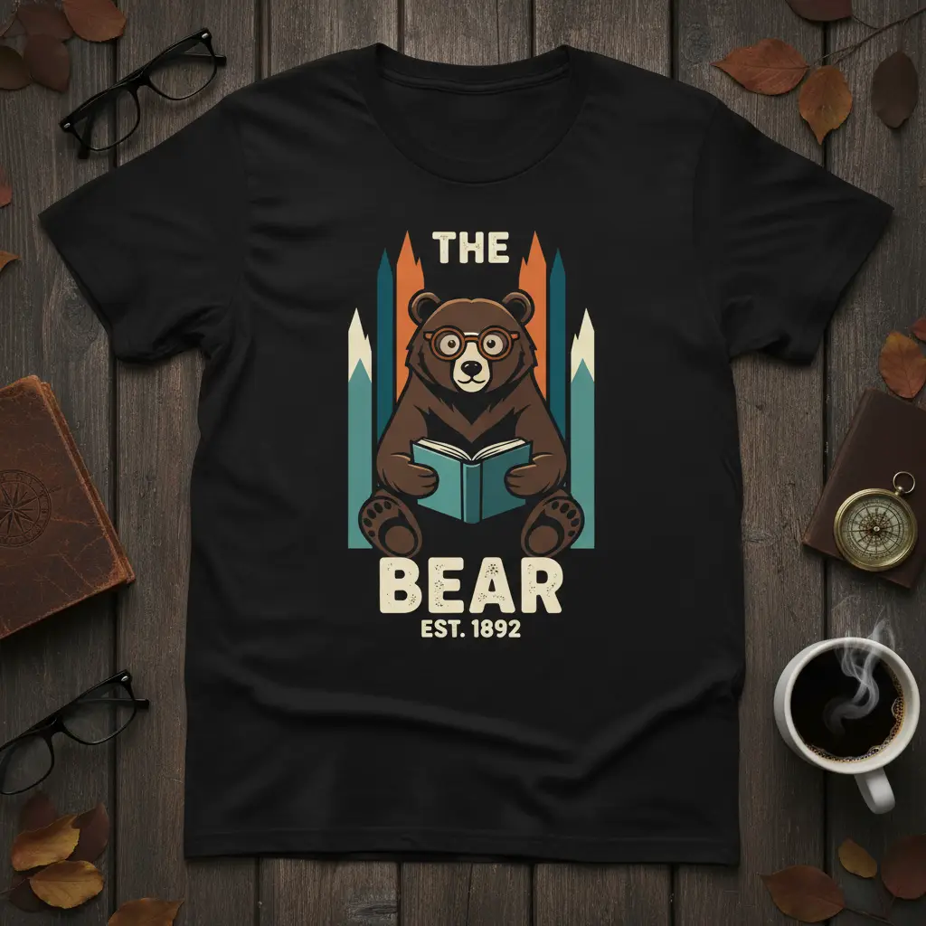 This “The Bear Est. 1892” t-shirt celebrates the timeless pleasure of reading. The central graphic features a charming brown bear, complete with spectacles, fully immersed in a captivating book. This design is perfect for bookworms who find solace and adventure within the pages of a novel, making it an ideal addition to any reader’s collection.