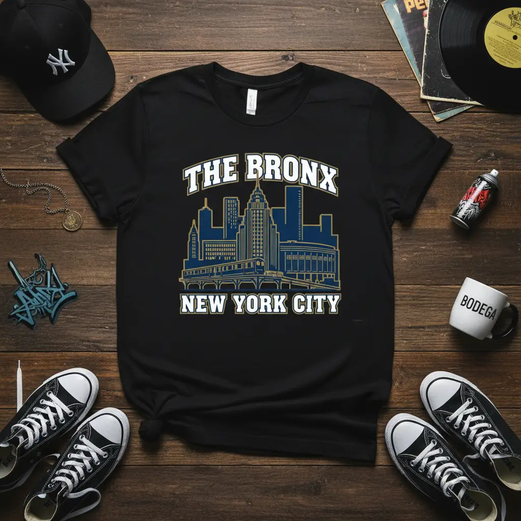 It’s a design that speaks to the heart of New York, offering a visual narrative of the Bronx’s architectural charm and dynamic spirit. Whether you’re a lifelong resident or an admirer from afar, this shirt allows you to carry a piece of the Bronx with you. The combination of strong typography and intricate graphics makes for a statement piece that is both fashionable and meaningful.