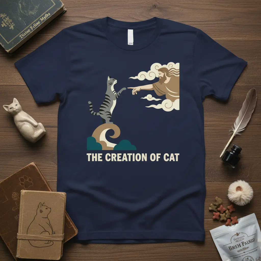 The inspiration drawn from classical art adds a sophisticated yet playful layer to this t-shirt. It’s a nod to one of history’s most famous artworks, twisted with a modern, humorous twist that resonates with today’s cat lovers. The visual storytelling is immediate and engaging, making it an instant favorite for those who appreciate witty and unique graphic designs. This The Creation of Cat design is more than just apparel; it’s a wearable piece of art that celebrates your love for cats.