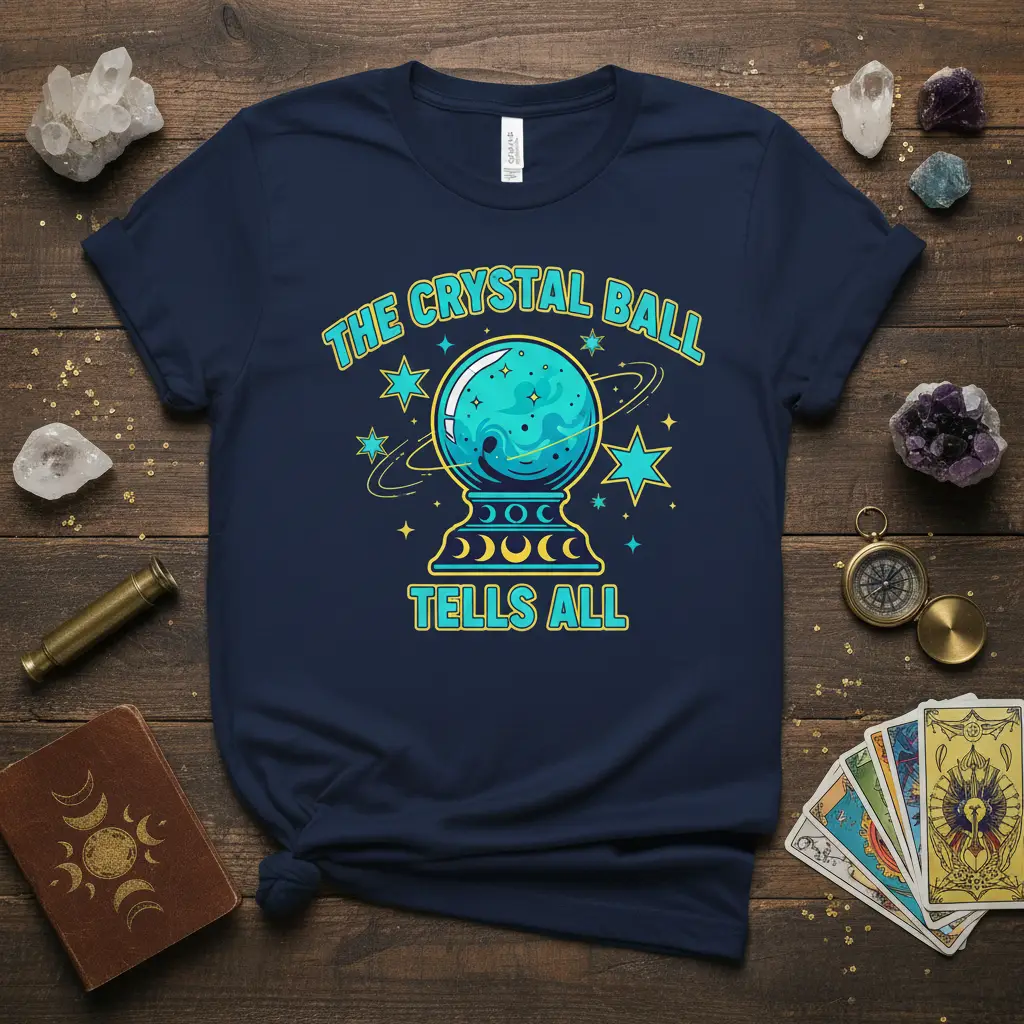 Don’t miss out on the opportunity to own this enchanting “THE CRYSTAL BALL TELLS ALL” t-shirt. It’s the perfect way to infuse your everyday style with a touch of mystery and spiritual flair. Whether you’re buying it for yourself or as a gift, this tee is sure to be a hit. Add this unique piece to your collection and let your mystical journey begin. Shop now and discover the magic!
