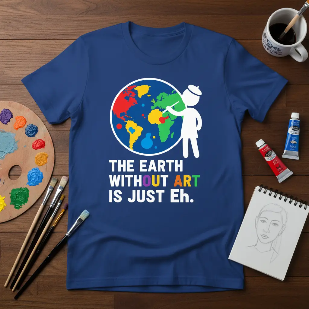 The Earth Without Art Is Just Eh. T-Shirt is more than just apparel; it’s a statement piece for those who understand the profound importance of creativity in shaping our world. This unique design celebrates the essence of art and its power to bring color, life, and meaning to our planet. It serves as a daily reminder that art is not just a hobby but a fundamental aspect of human experience and global culture. The eye-catching graphic and thought-provoking text make this tee a conversation starter and a cherished item for anyone passionate about artistic expression.