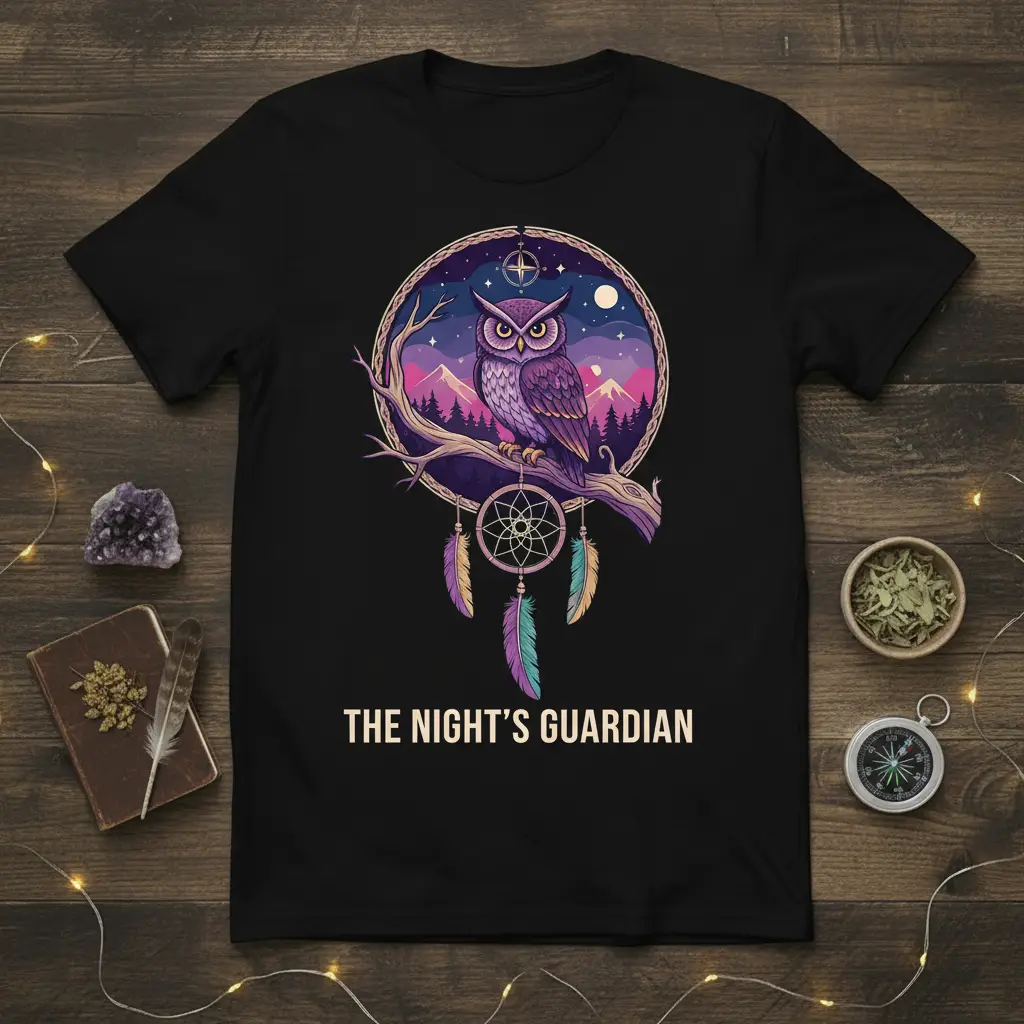 Searching for a unique and meaningful gift? The Night’s Guardian t-shirt is an exceptional choice for birthdays, holidays, or just because. It’s an ideal present for friends, family members, or anyone who cherishes owls, dreamcatchers, and the mystical allure of the night. Give the gift of wearable art that inspires wonder and connection.