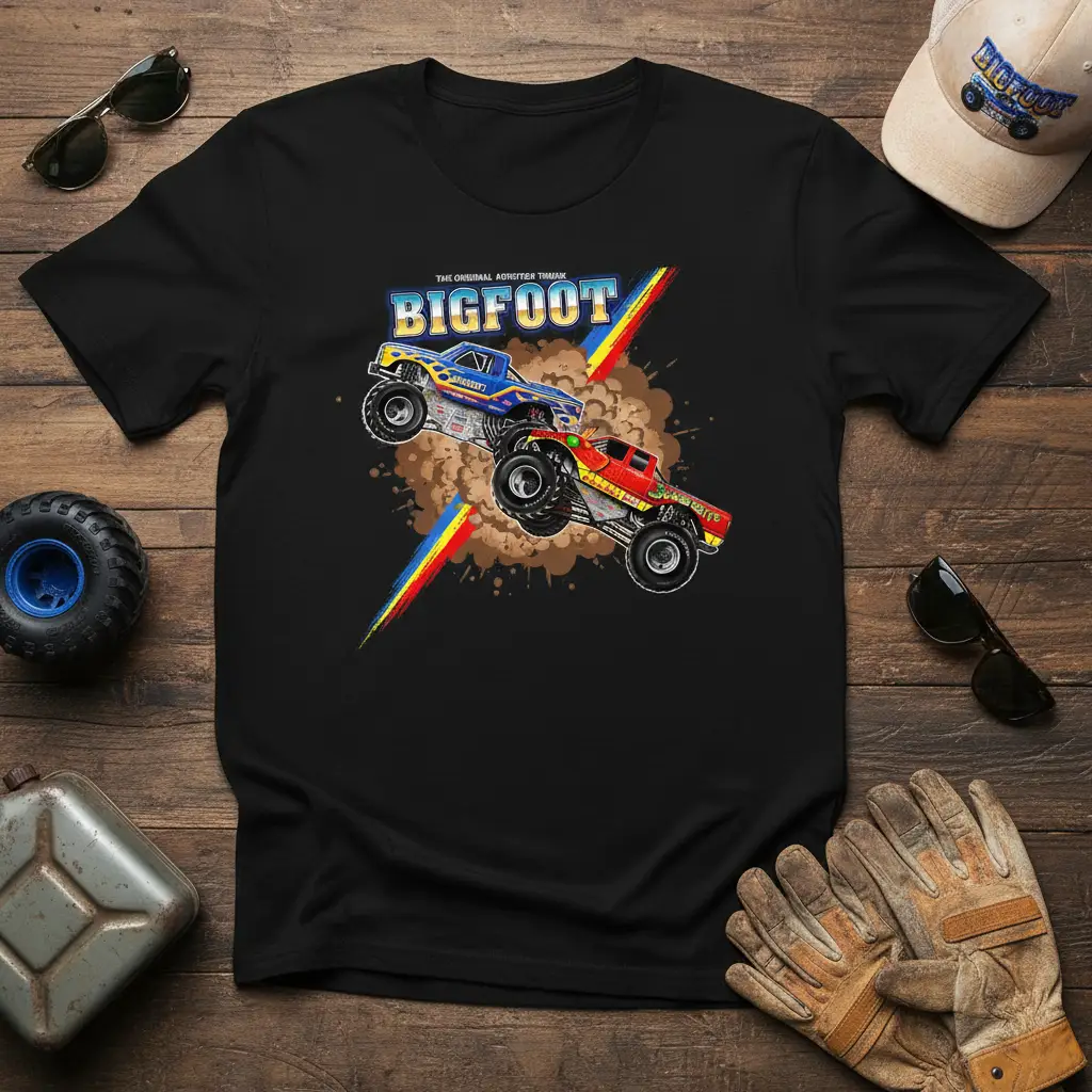 The classic styling ensures that this design remains timeless, appealing to both long-time fans and newcomers to the monster truck scene. It’s a versatile piece that can be worn to events, casual outings, or simply as a comfortable addition to your everyday wardrobe. Let the spirit of Bigfoot fuel your adventures.