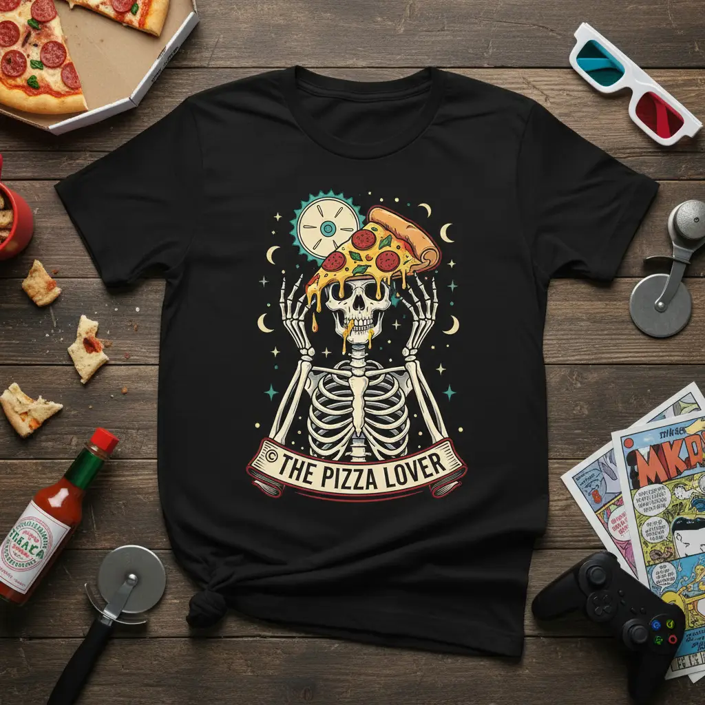 The Pizza Lover t-shirt is an absolute must-have for anyone who believes pizza is a way of life, not just a meal. This unique graphic tee perfectly captures the essence of true pizza devotion with its eye-catching skeleton design and bold declaration. It’s designed for comfort and style, making it the ideal statement piece for casual outings, pizza parties, or simply lounging at home while enjoying your favorite slice. Show the world where your true culinary affections lie with this unforgettable garment.
