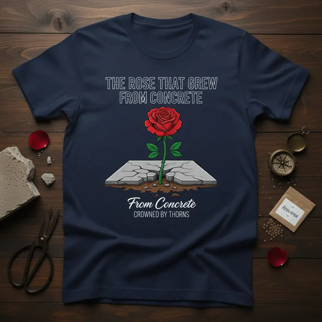 The Rose That Grew From Concrete Crowned By Thorns design is more than just apparel; it’s a wearable testament to the human spirit’s ability to persevere and flourish against all odds. This profound message resonates with anyone who has faced hardship and emerged stronger, symbolizing the beauty that can arise from the most challenging environments. It speaks to resilience, inner strength, and the quiet power of growth even when surrounded by adversity. This t-shirt serves as a constant reminder that beautiful things can indeed grow from tough situations, inspiring both the wearer and those around them.
