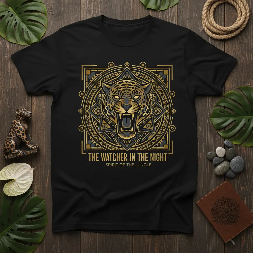 The Watcher In The Night Spirit Of The Jungle t-shirt is more than just apparel; it’s a statement of power, mystery, and connection to the wild. This striking design features a fierce jaguar, the embodiment of nocturnal prowess and untamed spirit, set within an intricate golden tribal border. The bold typography clearly articulates the theme, making it instantly recognizable for those who resonate with the call of the jungle. Crafted for comfort and durability, this tee is perfect for making a bold impression while embracing your primal side. It’s an ideal choice for individuals who appreciate unique graphics and the symbolic strength of powerful animals.