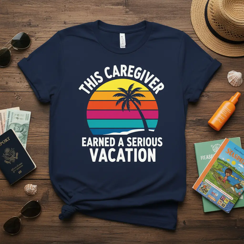 THIS CAREGIVER EARNED A SERIOUS VACATION is more than just a phrase; it’s a declaration of well-deserved rest and a celebration of hard work. For those who dedicate their lives to caring for others, the moment they can finally step away and recharge is incredibly significant. This t-shirt captures that sentiment perfectly, offering a stylish and comfortable way to announce that it’s time for relaxation and adventure. It’s a tribute to resilience, compassion, and the universal need for a break.