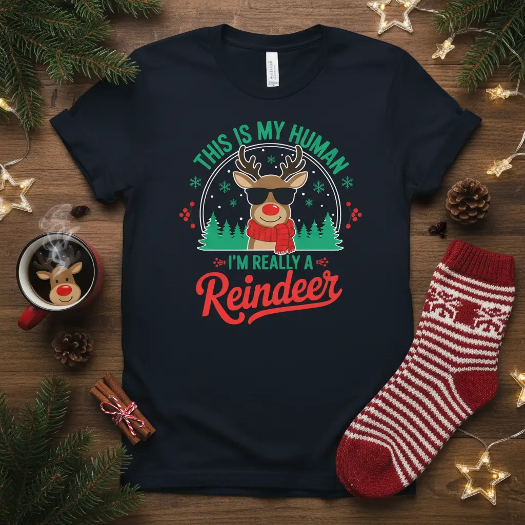THIS IS MY HUMAN I’M REALLY A Reindeer Christmas Shirt