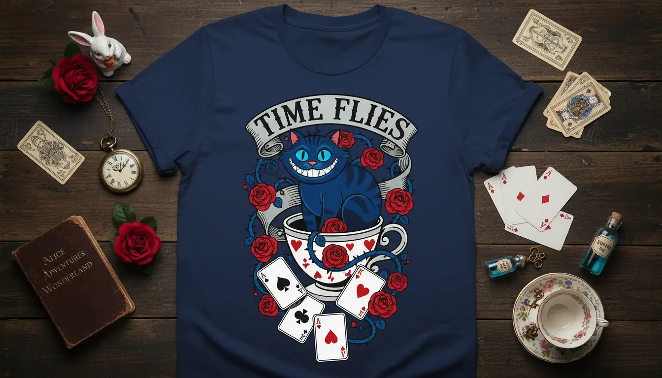 The Enchanting “Time Flies” Cheshire Cat T-Shirt