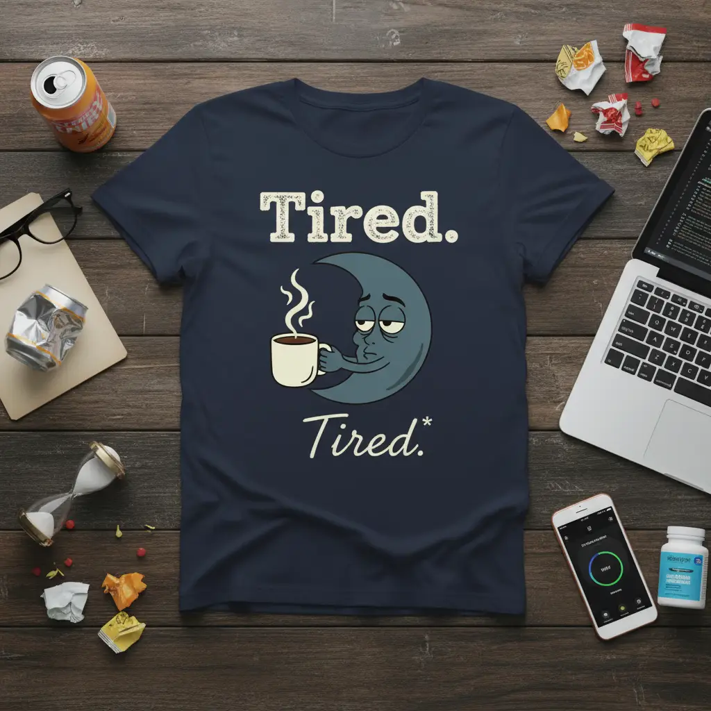 The “Tired. Tired.*” Graphic Tee: A Celebration of Caffeine and Comfort