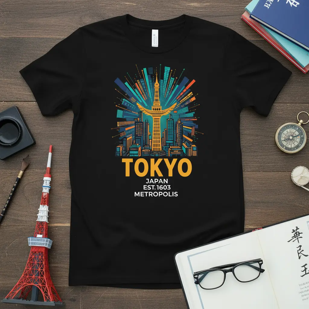 Don’t miss the opportunity to own this striking TOKYO JAPAN EST. 1603 METROPOLIS t-shirt. It’s more than just clothing; it’s a wearable piece of art that celebrates the rich history and dynamic present of Japan’s capital. Perfect for expressing your personal style and your love for travel, this tee is sure to become a favorite. Add this iconic cityscape to your collection and let the adventure begin! Shop now and wear your wanderlust proudly.