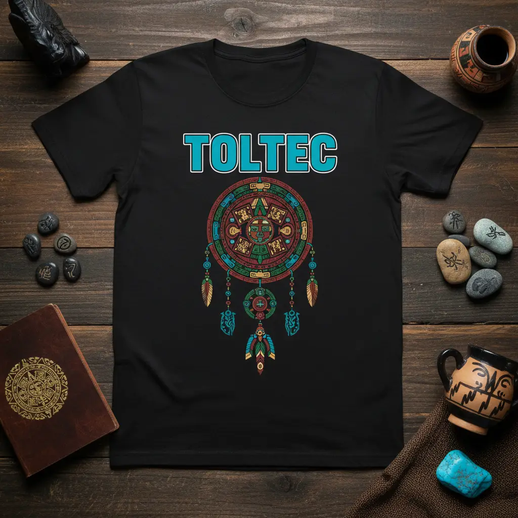 The design incorporates motifs reminiscent of indigenous dreamcatchers, traditionally used to protect against bad dreams and bring good fortune. Combined with the powerful “TOLTEC” inscription, this shirt becomes a symbol of resilience, wisdom, and the enduring spirit of ancient peoples. It’s an ideal choice for cultural festivals, educational events, or simply as a daily expression of identity and heritage. The thoughtful design ensures it stands out while remaining a tasteful tribute to a remarkable civilization.