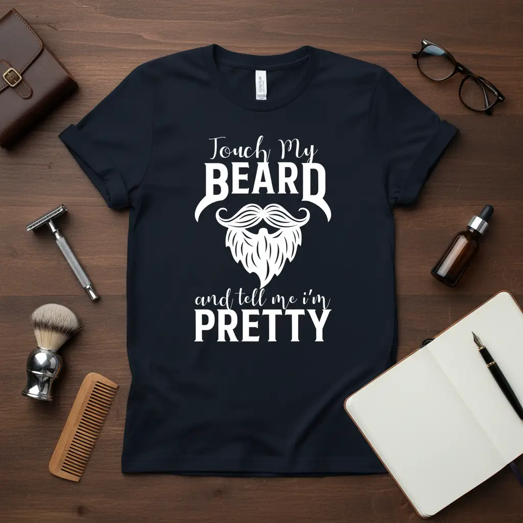 Touch My BEARD and tell me I’m PRETTY – this statement t-shirt is more than just apparel; it’s a declaration of masculine pride and a playful invitation for admiration. Designed for the man who cherishes his facial hair, this shirt combines humor with a touch of confidence. It’s crafted for comfort and style, making it a standout piece in any wardrobe. Whether you’re out and about or relaxing at home, this tee is sure to bring smiles and compliments.
