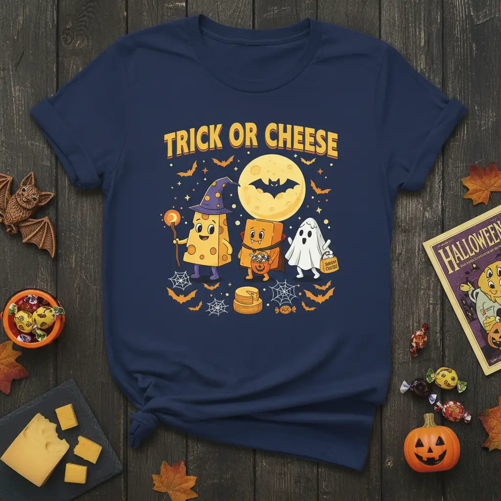 Get ready to say “Trick or Cheese!” with this hilariously charming Halloween T-Shirt. This unique tee captures the spirit of the season with a delightful twist, perfect for anyone who loves a good pun and a festive holiday. It’s designed to bring smiles and laughter, making it an instant favorite for Halloween parties, trick-or-treating adventures, or just cozy nights in watching spooky movies. Embrace the fun of Halloween with apparel that’s as cheesy as it is festive. This shirt is more than just clothing; it’s a statement of your love for Halloween and all things delicious and fun.