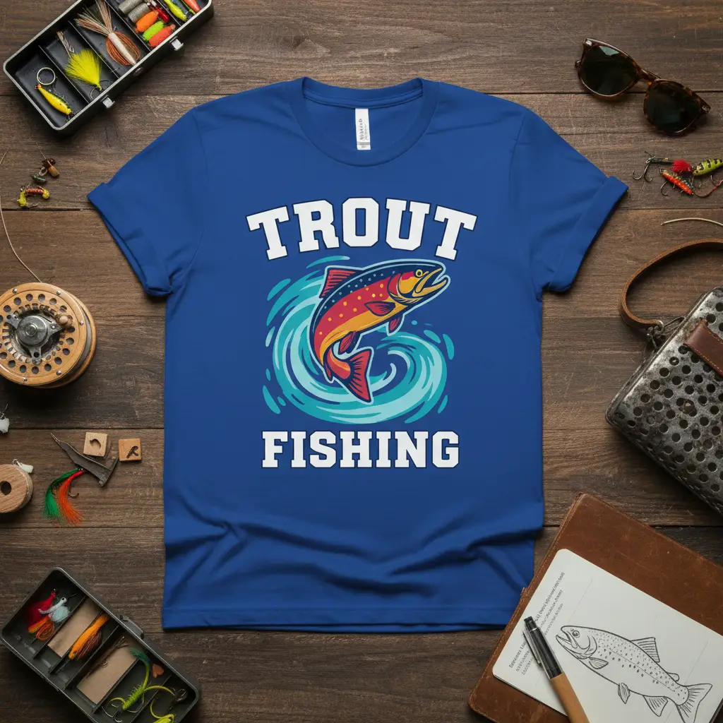 Pick from Black, Navy, Royal, Dark Heather, Red, and White to match your mood and wardrobe staples. Each colorway keeps the Trout Fishing design clear and photo-ready for everyday wear.