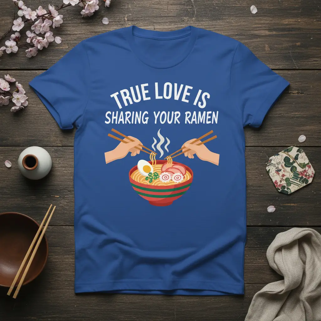 True Love Is Sharing Your Ramen is a sentiment that resonates deeply with food lovers everywhere, especially those who find joy in the comforting and delicious world of Japanese noodles. This t-shirt captures that special bond, celebrating the idea that sharing a steaming, flavorful bowl of ramen is the ultimate act of affection and connection. It’s more than just a piece of apparel; it’s a statement of love for both food and companionship. The design is perfect for couples, best friends, or anyone who understands that the best meals are the ones shared. Embrace this heartwarming message and wear your love for ramen proudly.