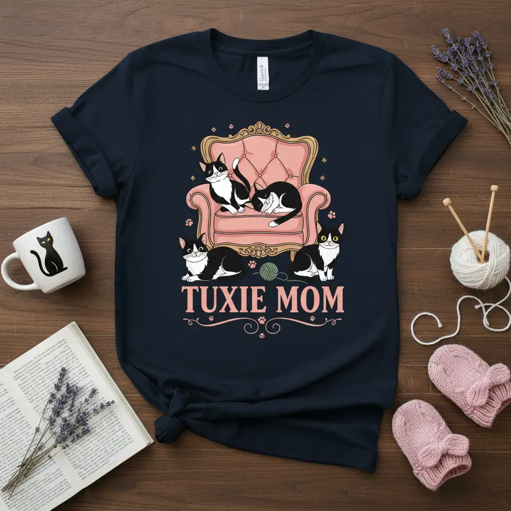 We offer this delightful design in six essential colors: Black, Red, Navy, White, Dark Heather, and Royal. You can select your preferred size from S, M, L, XL, 2XL, and 3XL. This variety ensures that every Tuxie Mom can find the perfect combination of color and fit to express her unique style and feline devotion. The high-quality print ensures the design remains vibrant wash after wash.