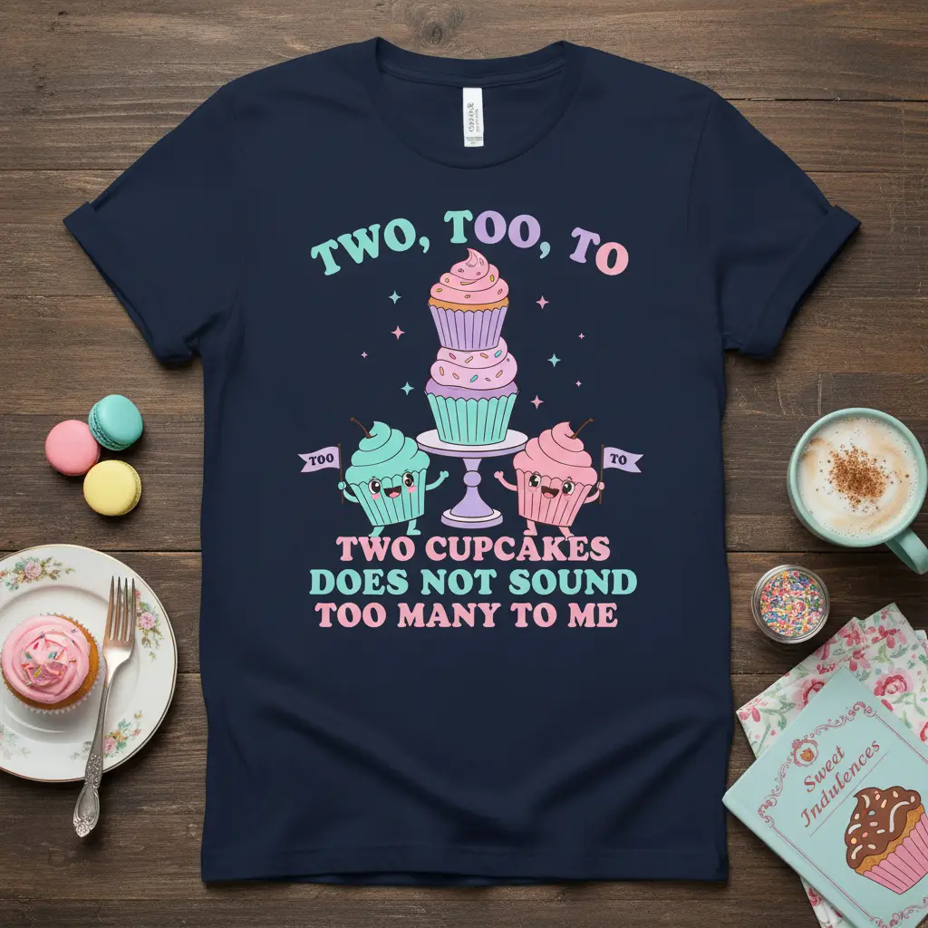 Embrace Your Inner Sweet Tooth with the “TWO, TOO, TO TWO CUPCAKES” T-Shirt