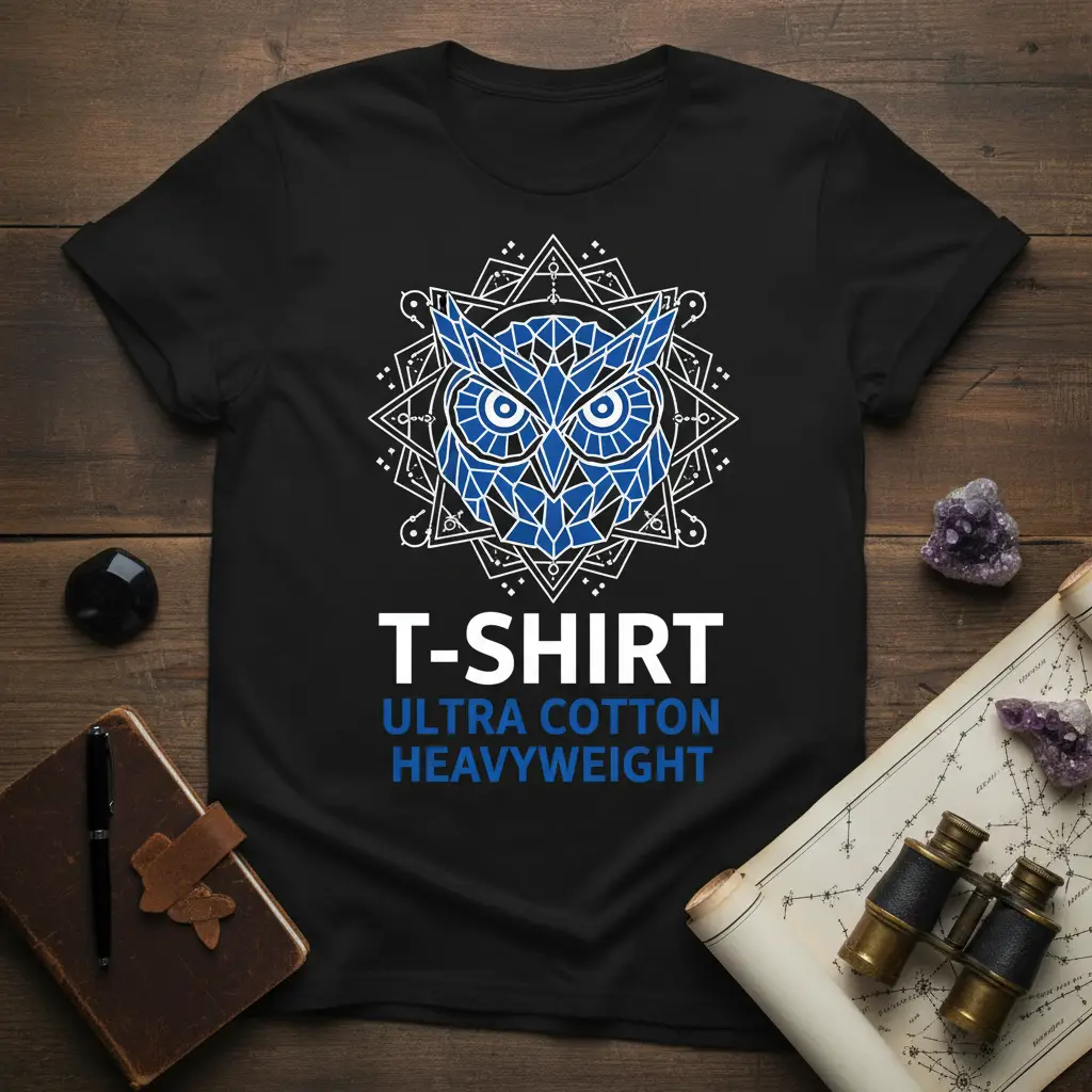 The striking geometric owl graphic featured on this tee adds a unique artistic touch, making it stand out from ordinary t-shirts. The intricate design is printed with precision, ensuring vibrant colors and sharp details that capture attention. This visual element elevates the t-shirt from a simple garment to a piece of wearable art, perfect for expressing your individual style.