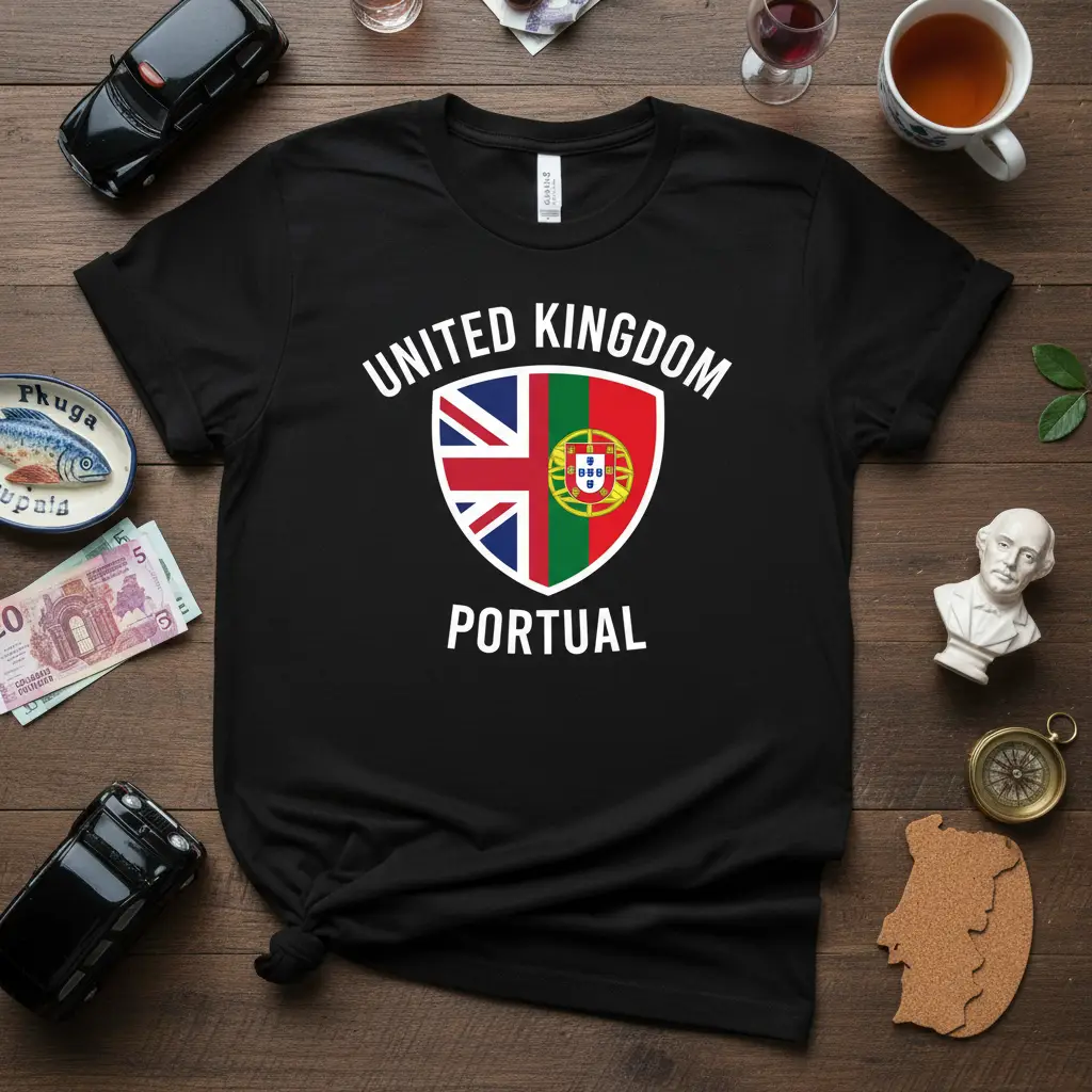 Whether you’re looking for a unique souvenir from your travels or a way to connect with your Portuguese-British ancestry, this t-shirt fits the bill perfectly. It serves as a constant reminder of cherished memories, family bonds, or a deep appreciation for these two influential nations. The design is timeless and carries significant personal meaning for many.