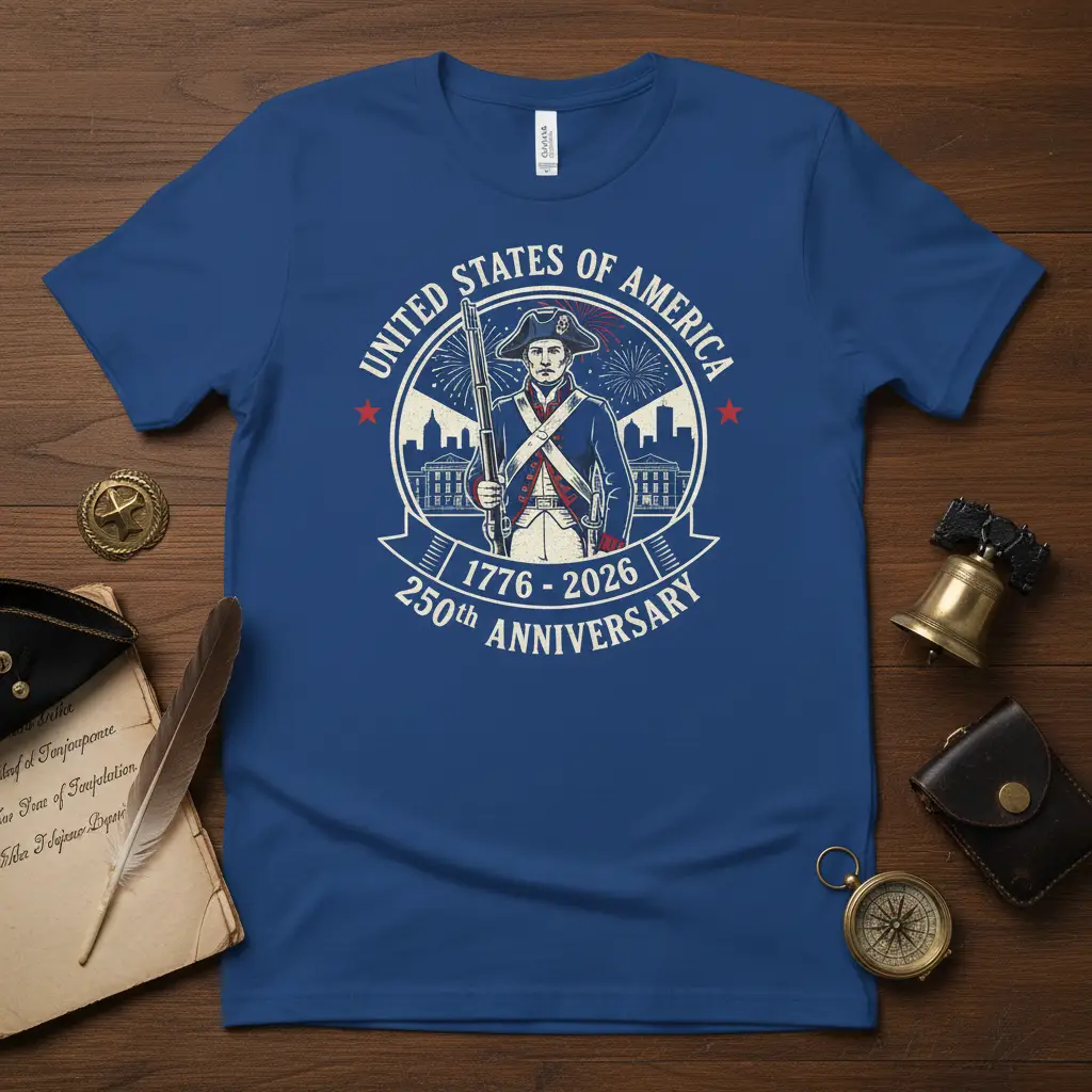 UNITED STATES OF AMERICA 1776 – 2026 250th ANNIVERSARY t-shirt is more than just apparel; it’s a wearable piece of history. This design pays homage to a pivotal moment in the nation’s journey, commemorating 250 years of independence and freedom. It features a striking graphic that encapsulates the spirit of the revolution and the enduring legacy of American ideals. Crafted with care, this t-shirt is designed for comfort and longevity, allowing you to proudly display your patriotism for years to come.