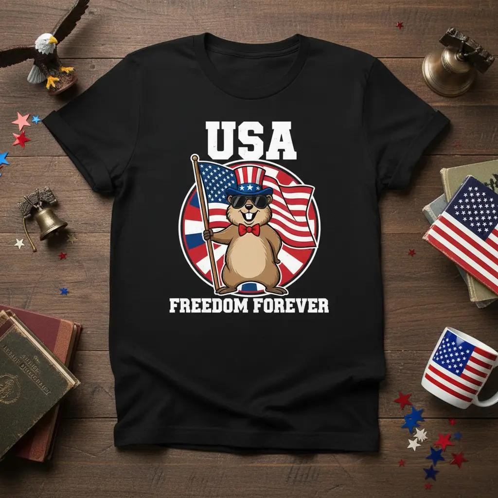 USA Freedom Forever Patriotic Groundhog T-Shirt