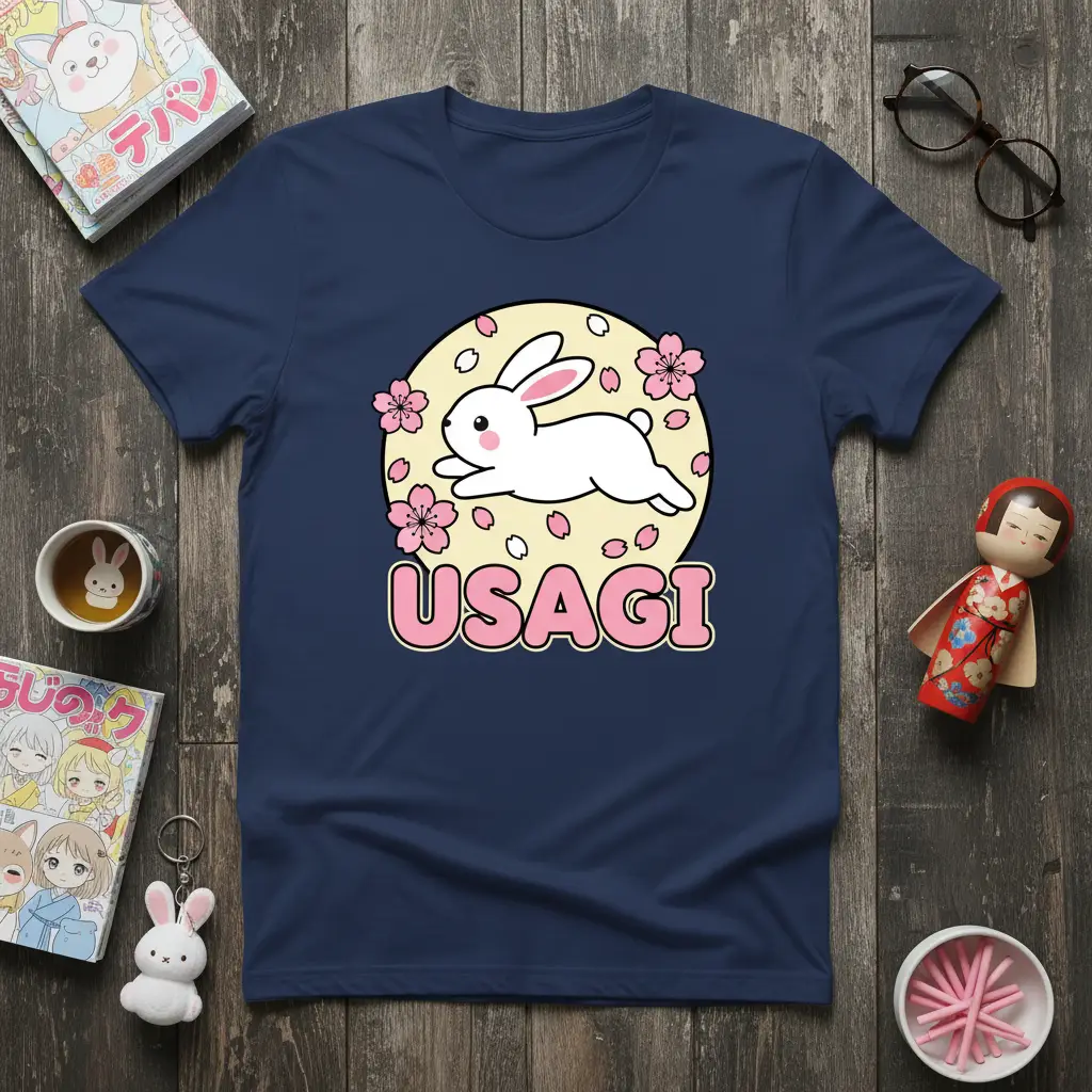 Dive into the world of kawaii with this charming Usagi t-shirt. Kawaii, the Japanese culture of cuteness, is perfectly represented by the adorable bunny and the soft floral elements. This design taps into the universal appeal of cute characters and gentle aesthetics, making it a beloved choice for fans of all ages. It’s a fantastic way to express your personal style and your appreciation for designs that are both visually appealing and emotionally resonant. The overall mood is cheerful, lighthearted, and utterly charming.