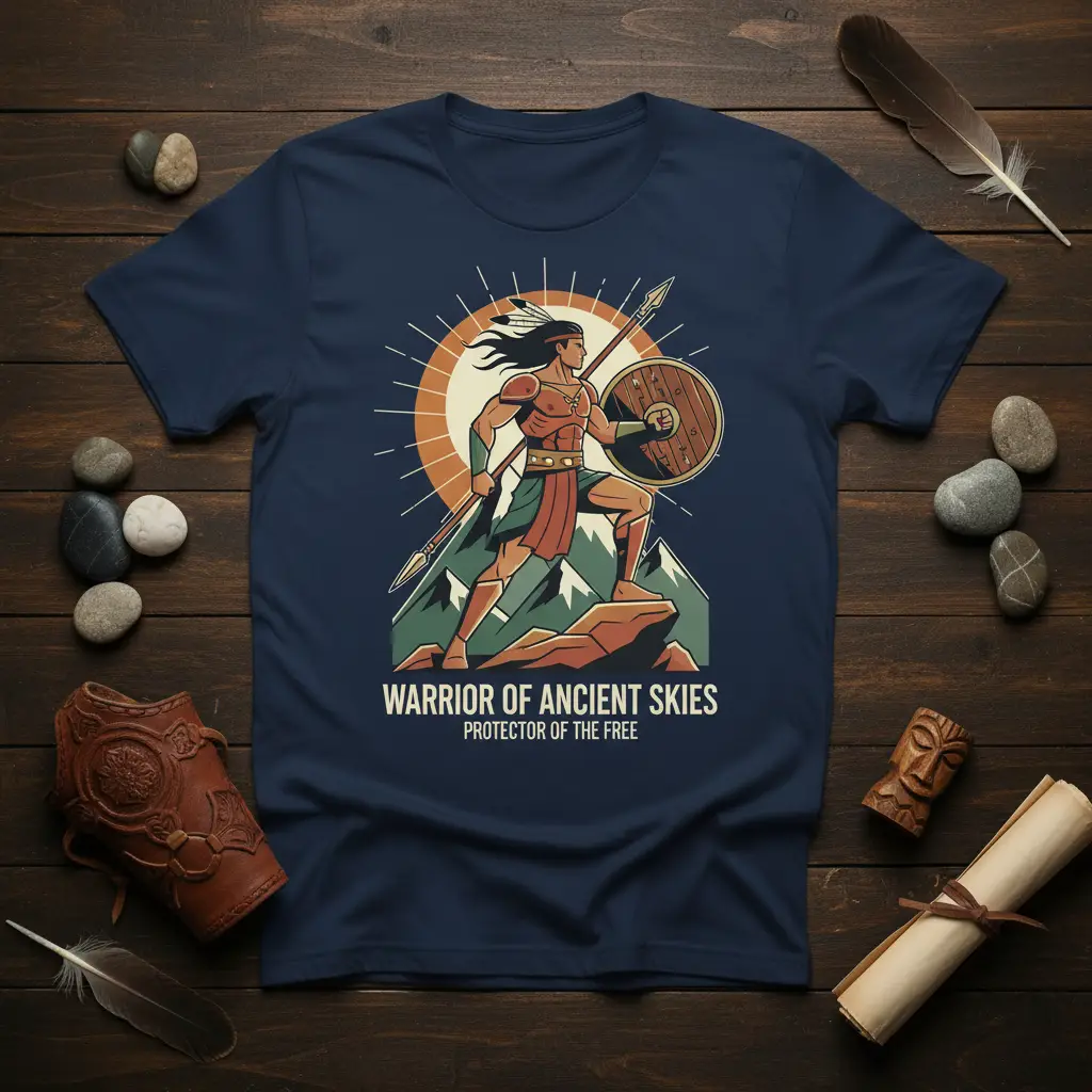 Warrior of Ancient Skies Protector of the Free embodies a spirit of courage, heritage, and unwavering freedom. This powerful design speaks to those who stand tall, drawing strength from ancient wisdom and the boundless sky. It’s more than just apparel; it’s a statement of resilience and a connection to timeless values. Wear this tee to honor the protectors and the ideals they champion, making a bold declaration of your own spirit.