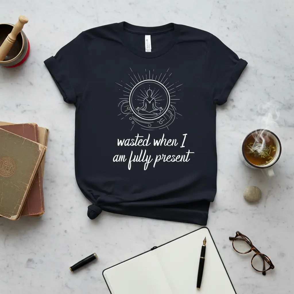 The “wasted when I am fully present” quote speaks to the profound experience of being completely absorbed in the current moment. When you are truly present, time seems to shift, and the outside world fades away, leaving only the clarity and peace of the now. This t-shirt is a perfect way to express your commitment to mindfulness and meditation, reminding yourself and others of the importance of living in the present.