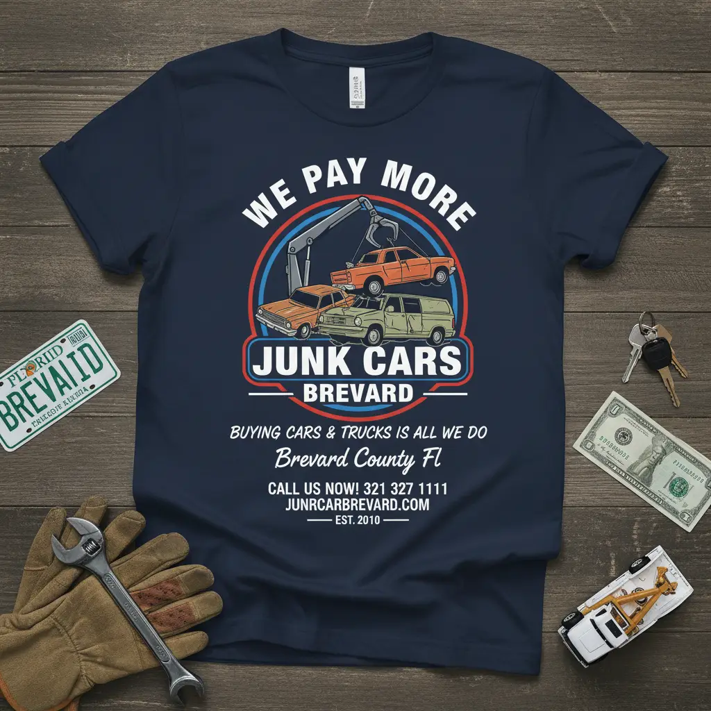 If you’re in Brevard County and looking to sell your car or truck, this t-shirt is a clear sign that you’ve found the right place. The WE PAY MORE JUNK CARS BREVARD design ensures you’re connecting with a service that values your business and offers competitive rates. Don’t hesitate to reach out via phone or visit our website to get a quick and fair offer on your vehicle today. Let us handle the hassle, so you can enjoy the cash.