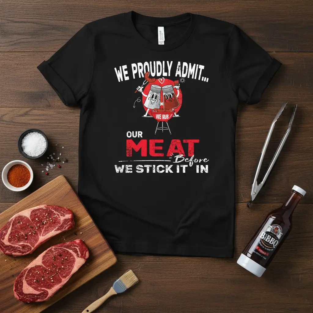 We Rub Our Meat Before We Stick It In, this statement t-shirt is designed for those who truly understand the art and passion behind a perfectly grilled or smoked piece of meat. It’s more than just apparel; it’s a badge of honor for the dedicated grill master, the backyard chef, and anyone who believes that proper preparation is the secret ingredient to a delicious meal. This shirt humorously declares a fundamental truth for meat lovers everywhere, celebrating the crucial step of seasoning before the cooking begins. Get ready to turn heads and spark conversations at your next cookout or gathering.