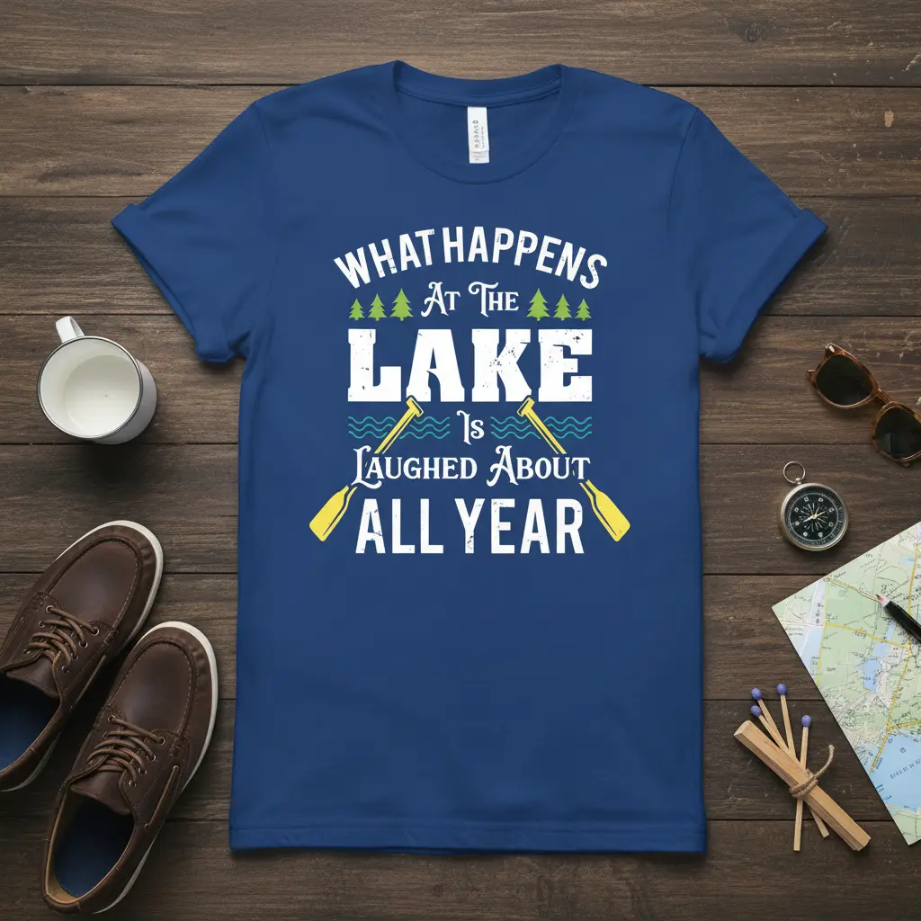 WHAT HAPPENS AT THE LAKE IS LAUGHED ABOUT ALL YEAR this classic quote t-shirt is designed for those who cherish every moment spent by the water. Whether you’re a seasoned boater, a casual swimmer, or simply love the serene atmosphere of a lake, this shirt lets you wear your passion proudly. It’s more than just apparel; it’s a statement of your connection to the great outdoors and the joy found in lakeside living. Perfect for gifting or for adding a touch of fun to your own wardrobe.