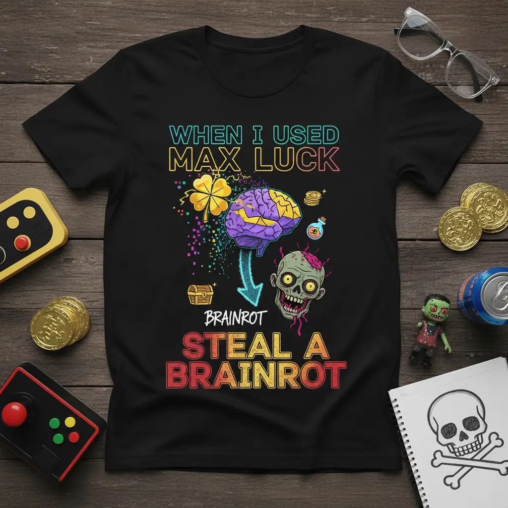 When I Used Max Luck Brainrot Steal A Brainrot Gaming Humor T-Shirt