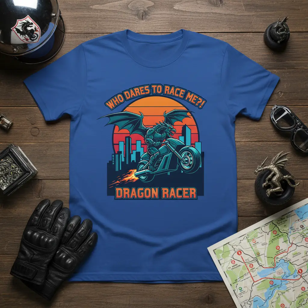 Find your perfect fit from our range of sizes, including S, M, L, XL, 2XL, and 3XL. This extensive sizing ensures that every rider can embrace the Dragon Racer spirit. We offer this design in classic Black, deep Navy, vibrant Red, crisp White, stylish Dark Heather, and bold Royal blue. Choose the color that best reflects your personal style and makes this legendary design pop.