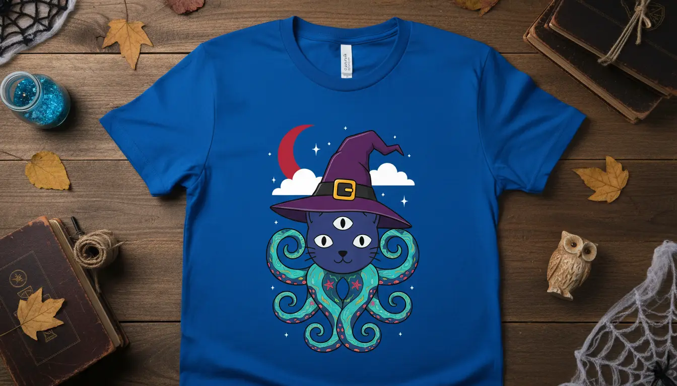 The unique combination of a witch cat and octopus tentacles creates a memorable image that resonates with fans of fantasy, folklore, and quirky designs. It’s a fantastic way to showcase your personality and your love for the Halloween season with a touch of feline charisma and oceanic mystery.
